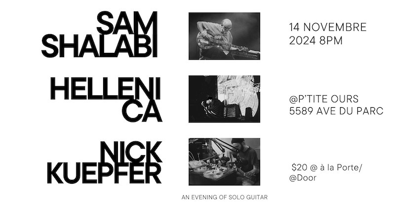 solo guitar night: Sam Shalabi, Hellenica, Nick Keupfer