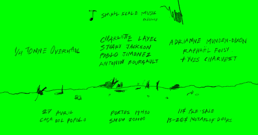 Small Scale Music present: 1/4 Tonne Overhaul, Charlotte Layec 4tet, Munden-Dixon/Foisy + Charuest